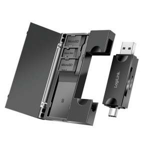 21. LogiLink USB 3.2 Gen1 card reader for SD- & microSD cards, with memory card storage