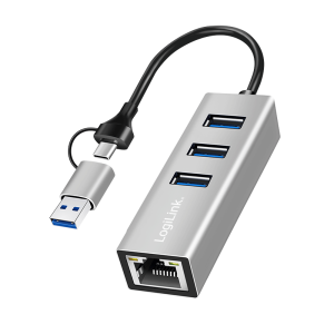 20. LogiLink USB 3.2 Gen 1 hub, 3x USB-A, 1x RJ45, 2-in-1 connection cable, silver