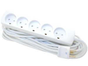 3. E-Line V-F Stikdåse 5-vejs med jord 5m - Hvid - Bulk