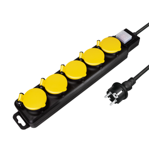 10. 5 vejs udendørs stikdåse med kontakt - 1,5m - Sort/gul