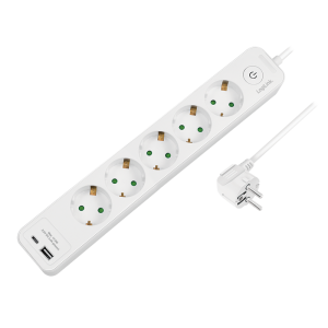 14. LogiLink Socket outlet 5-way + switch, 5x CEE 7/3, 1x USB-A, 1x USB-C, 1.5 m, white
