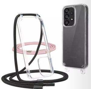 4. Samsung A54 Cover med snor - Pink & Sort