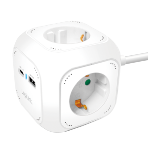15. LogiLink 4-way charging cube, 4x socket, 1x USB-C PD 20W, 1x USB-A QC 18W, white